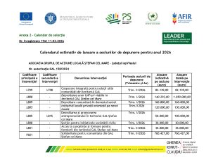 GAL Ștefan cel Mare – calendarul pe 2026: