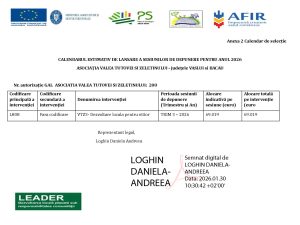 GAL Valea Racovei – calendarul pe 2026: